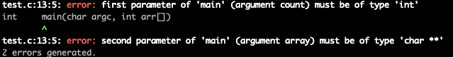 위와 같이 main함수의 인자로 다른 타입의 변수를 넣으면 안된다❗️ 정해져 있다.